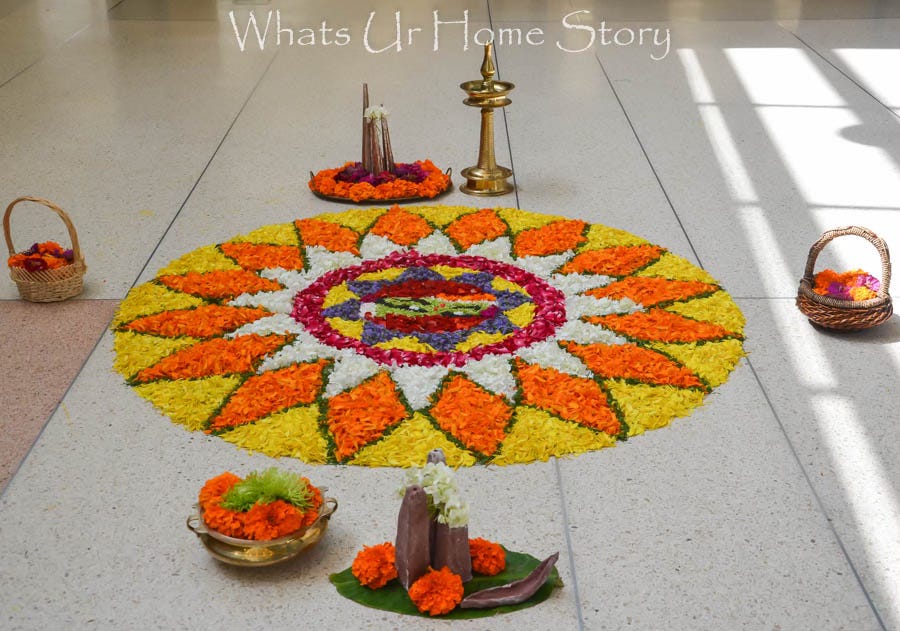 The floral rangoli of Onam is another signature element that is associated with the festival. One of the stories around this is as follows.